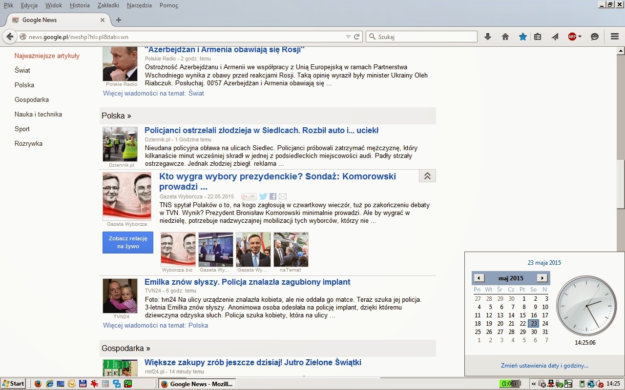 Informacja na stronie GW została zamieszczona wczoraj ale GoogleNews nie powinno jej zamieszczać jako dzisiejszego newsa! Zwłaszcza, że tekst jest jednoznaczny: Kto wygra wybory prezydenckie? Sondaż: Komorowski prowadzi