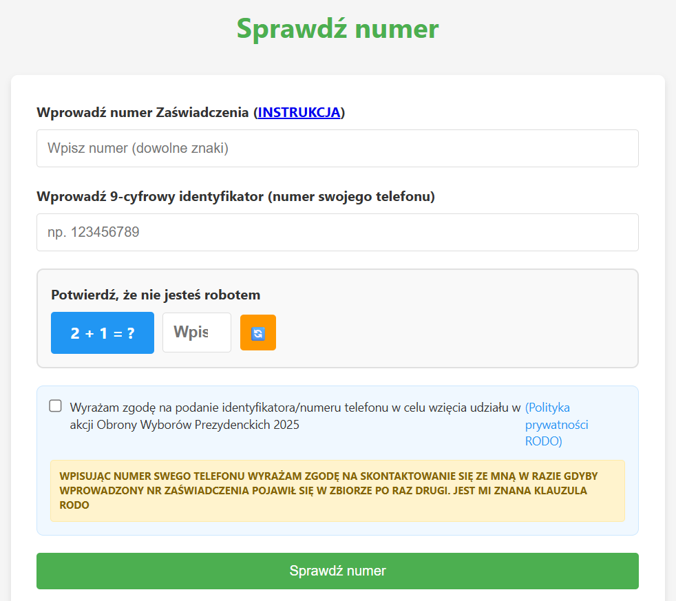 Jeśli są pytania, to kontakt do Stowarzyszenia Ruch Kontroli Wyborów: numer telefonu: +48 509458438
