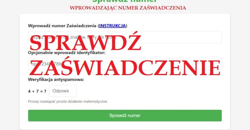 - Jeszcze raz dokładnie sprawdzamy czy poprawnie wpisaliśmy numer zaświadczenia i pełny numer naszego telefonu.